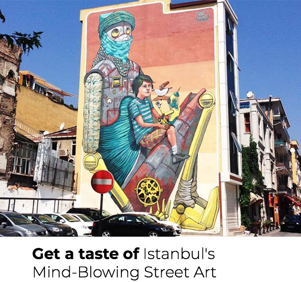 Istanbul's street art culture has grown considerably in the past few years, especially with the success of the Mural Istanbul Festival, which turned Kadikoy neighbourhood into one large open air art gallery. Get a taste of the Asian side of Istanbul, Kadikoy neighborhood by searching out the street arts as well as world famous trendy restaurant and cafes. |